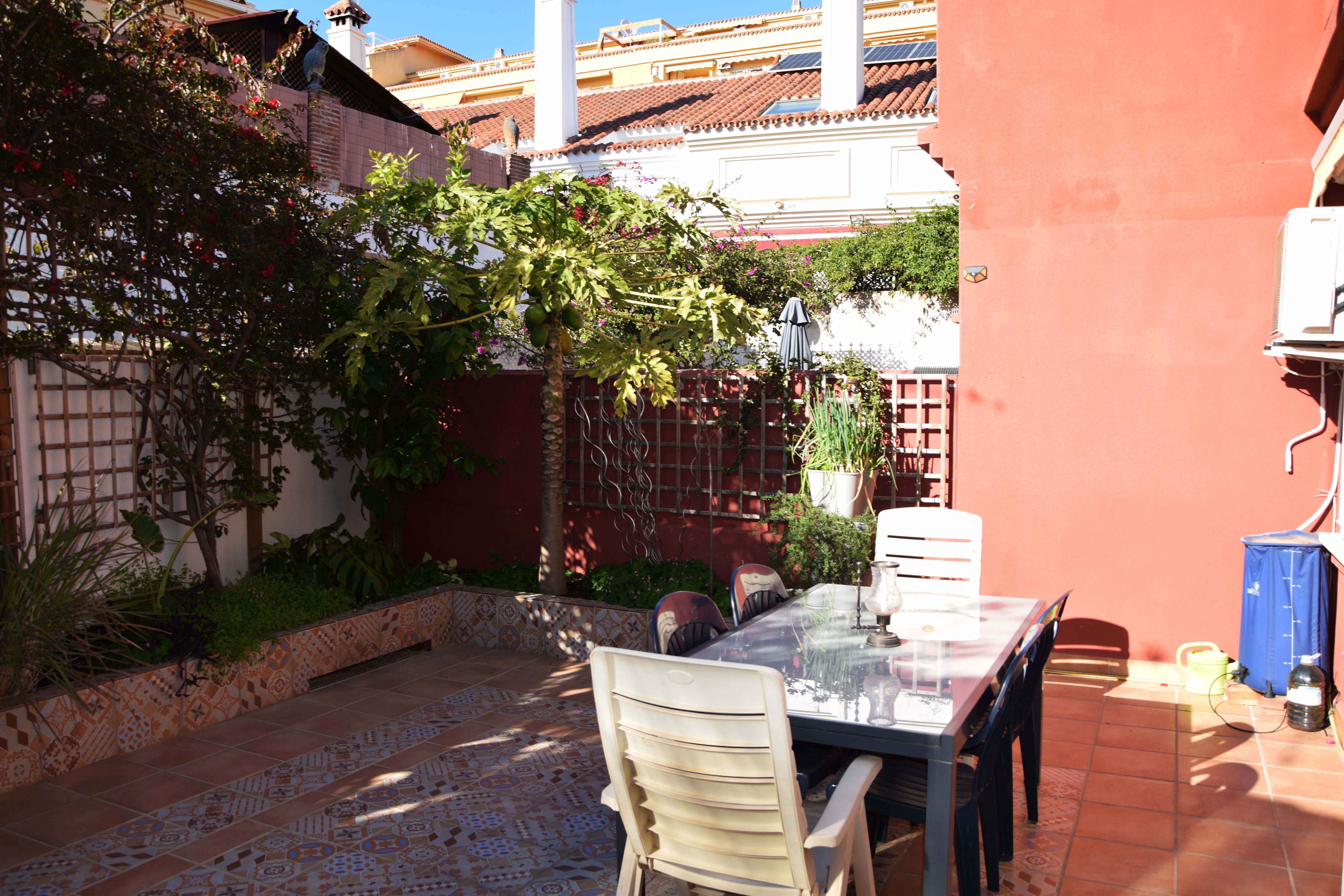 Fabuloso chalet adosado en la popular y tranquila zona de Los Pacos, y que por su seguridad está situado en un recinto cerrado con portones automáticos. La vivienda se distribuye en tres plantas, de la siguiente manera :- Planta baja: amplio y luminoso salón-comedor con salida a un encantador patio privado con acceso directo a piscinas y jardines comunitarios, despacho (u otro dormitorio), cuarto de aseo con ducha, cocina independiente con lavadero. Planta alta: tres dormitorios, dos de ellos con terraza privada, y dos cuartos de baño, uno en suite. Planta sótano: espectacular espacio diáfano de 76 m², originalmente garaje, perfecto para adaptar como zona de ocio, gimnasio, despacho o sala de trabajo.Una excelente oportunidad en una de las zonas más demandadas. Cerca de todos los servicios a diez minutos andando de la playa y el centro de Los Boliches.